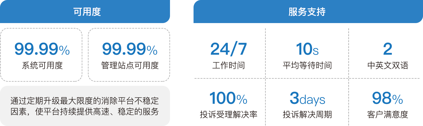 從使用安全、通信安全、存儲(chǔ)安全和管理安全等多維度全面保障客戶信息安全。7*24小時(shí)雙語客服實(shí)時(shí)在線,第一時(shí)間解決客戶問題。